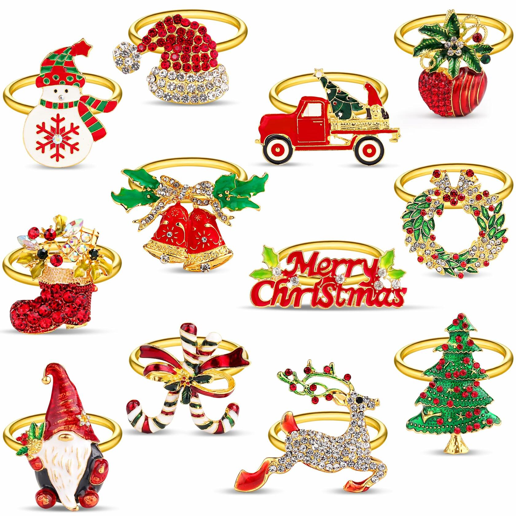 12 pack Gold Christmas Napkin Rings with Bling Various Christmas Napkin Holders