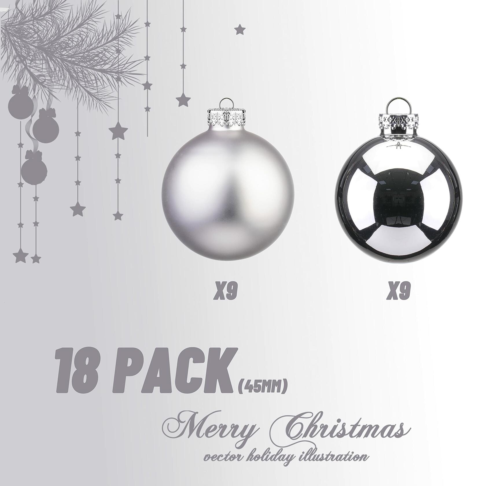 18PCS 1.8inch(45mm) Glass Christmas Ball Ornaments , Decorations, (Silver)