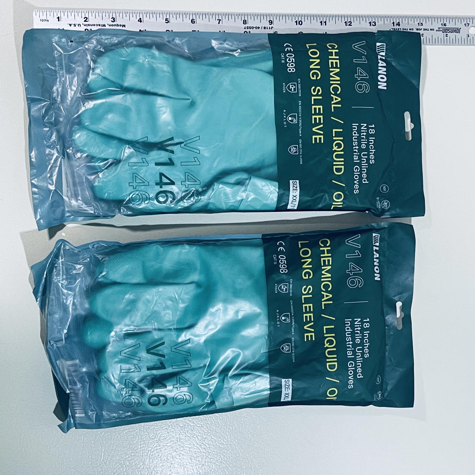 2-pack LANON V146 18" Nitrile Gloves, Chemical Resistant, Long Sleeve, XXL