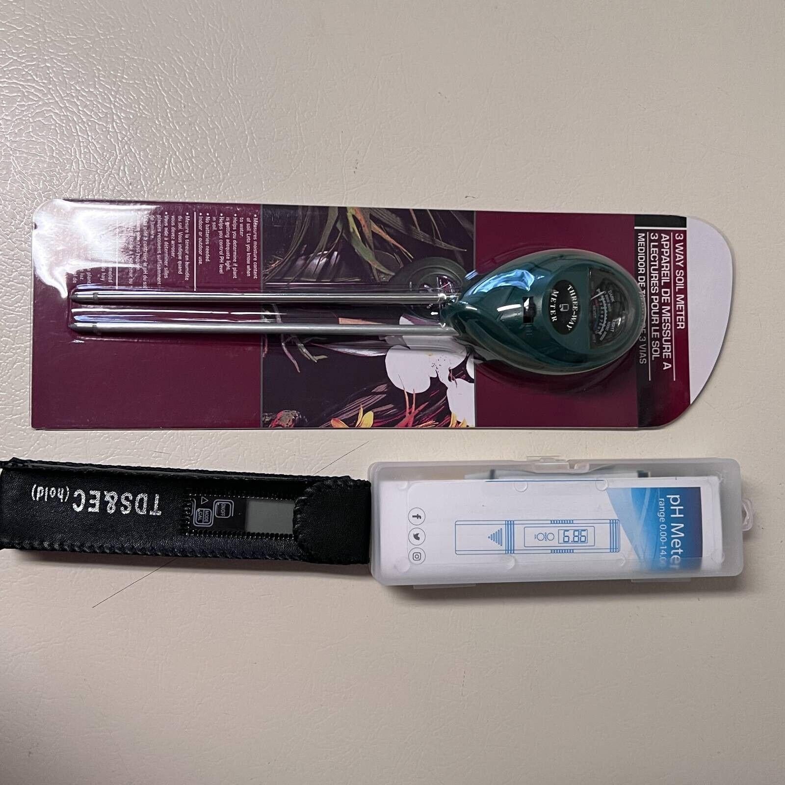 A set of analog 3-way soil meters for indoor and outdoor plant care. These versatile tools offer convenient measurement of: