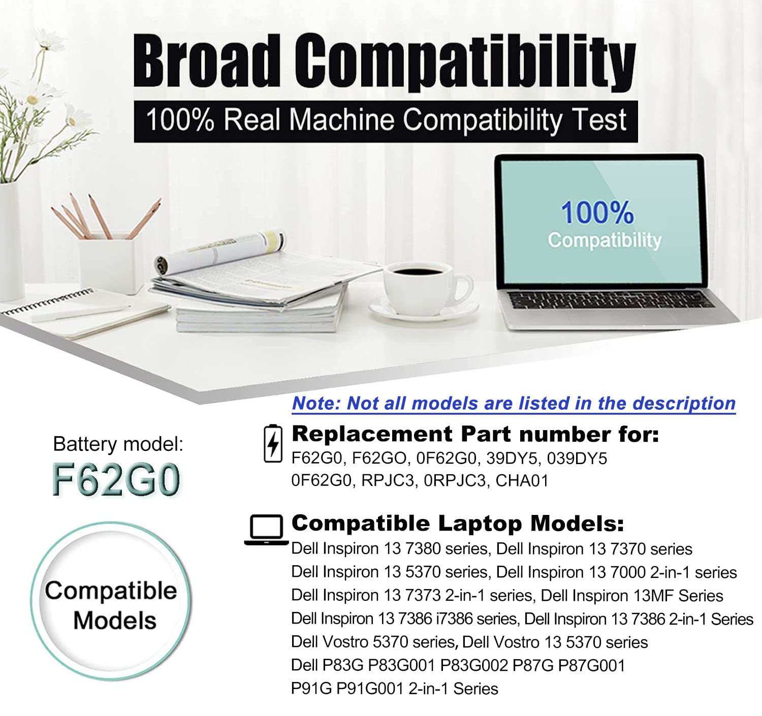 38WH F62G0 39DY5 Battery for select Dell Inspiron 13 7000 & select Vostro 13