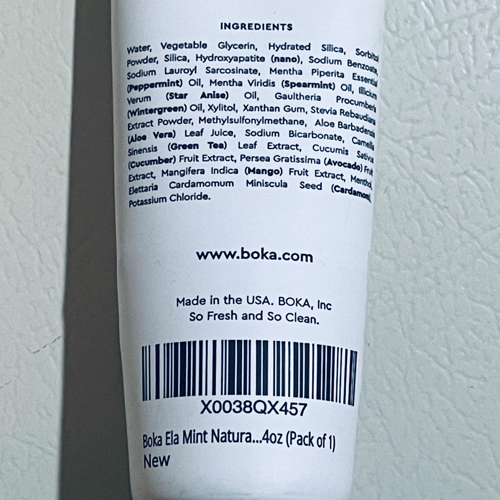 Package contains 4oz (113g) tube of Boka Ela Mint Natural Toothpaste.