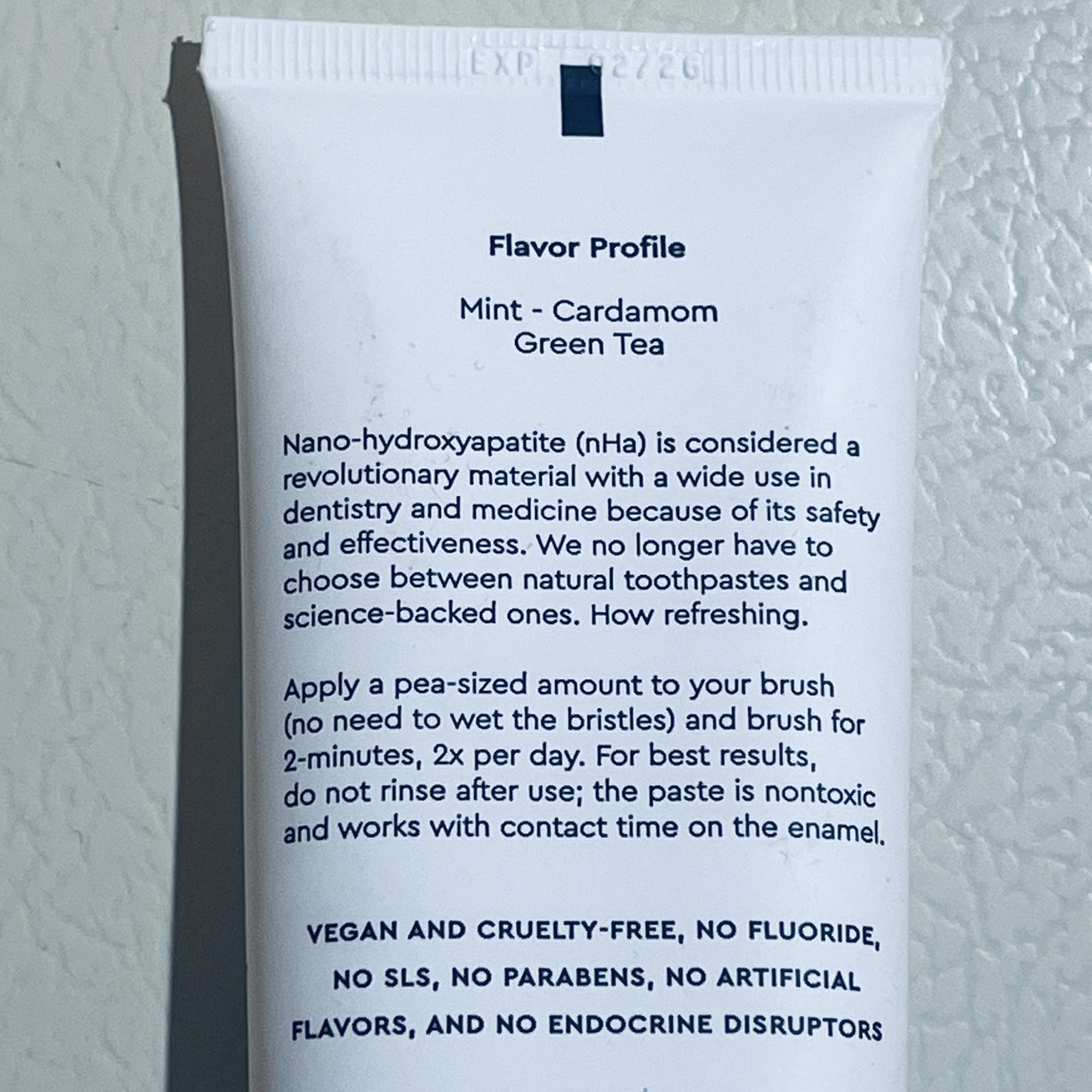 Fluoride free formula with nano-hydroxyapatite for remineralizing.