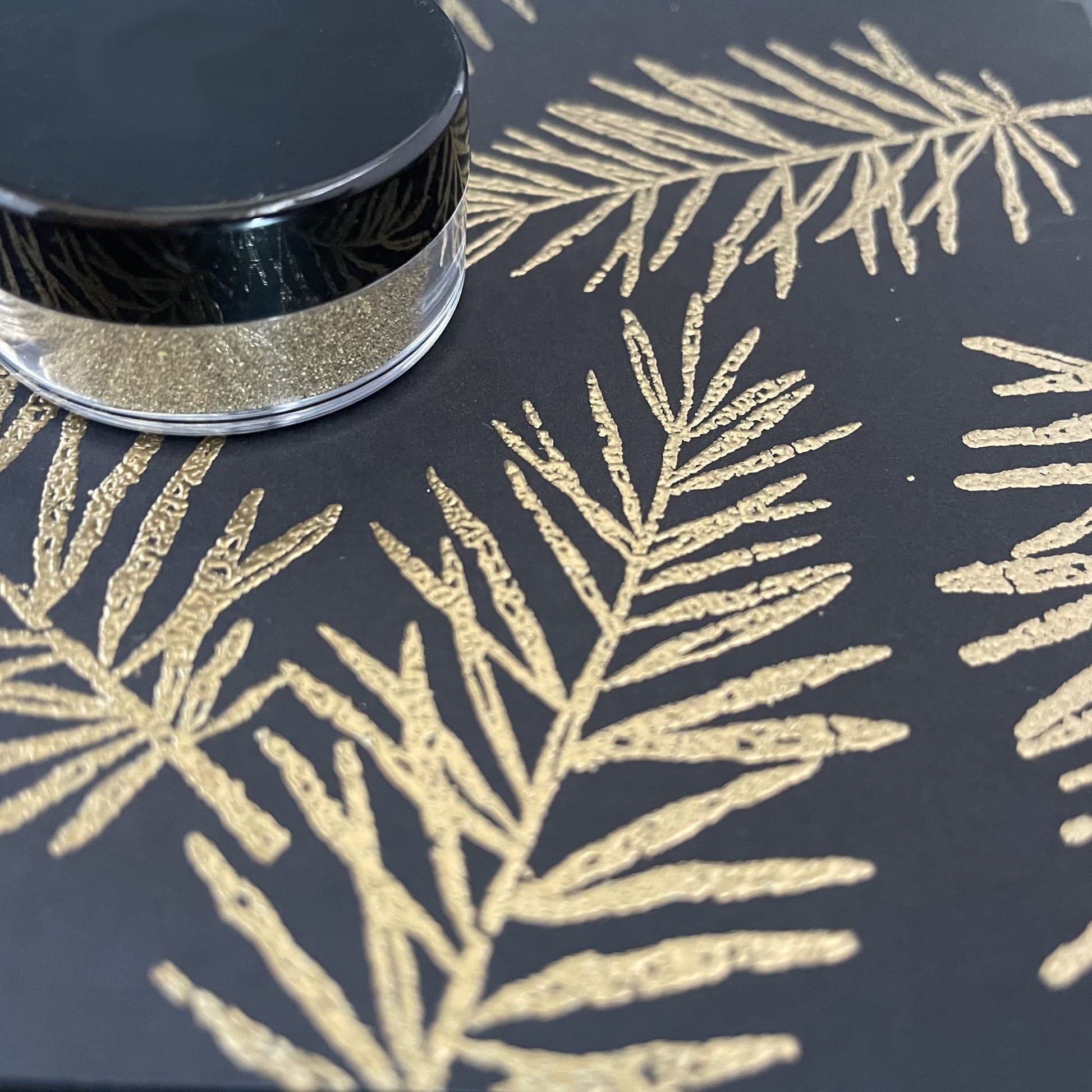 • 8 embossing powders (10ml each) in shimmering colors: blue, silver, black, gold, white, pearl, red, and bronze