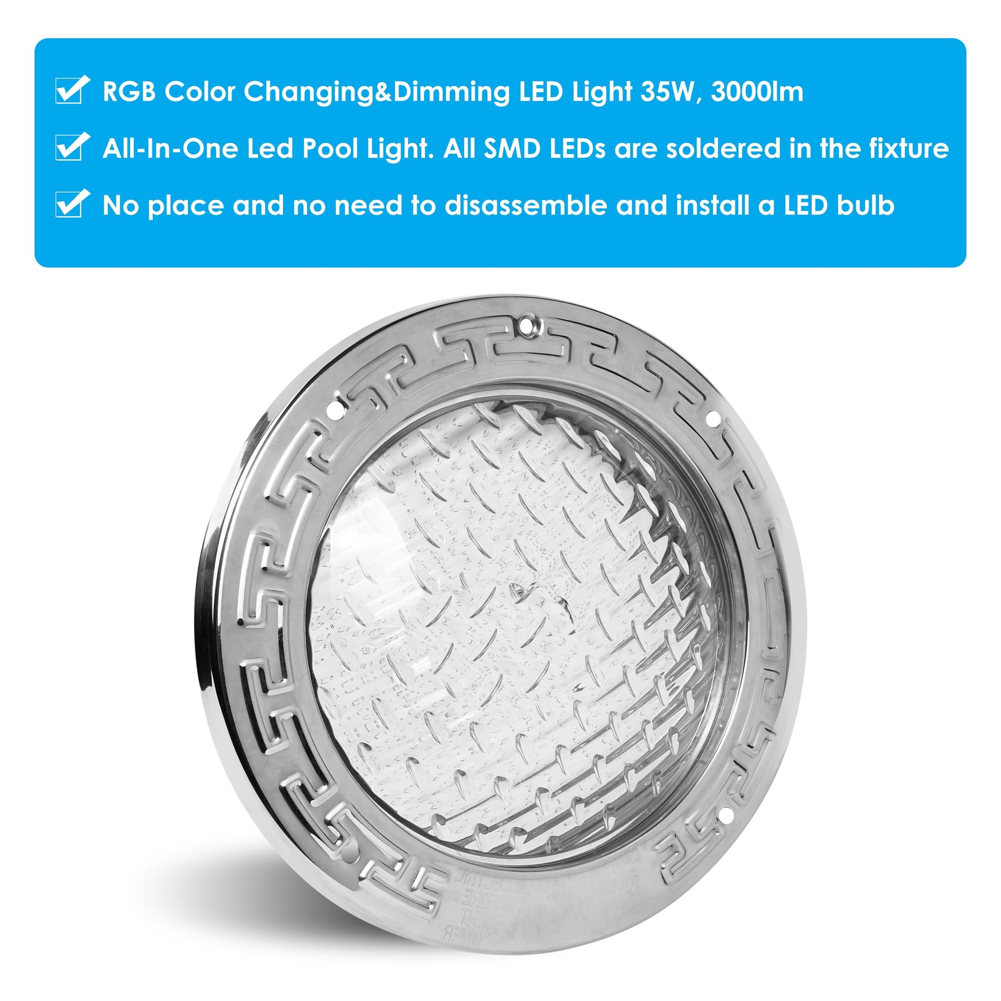 HQUA PN01DC 120V AC LED RGBW Color Change Inground Pool Light, 10" 35W 3000lm