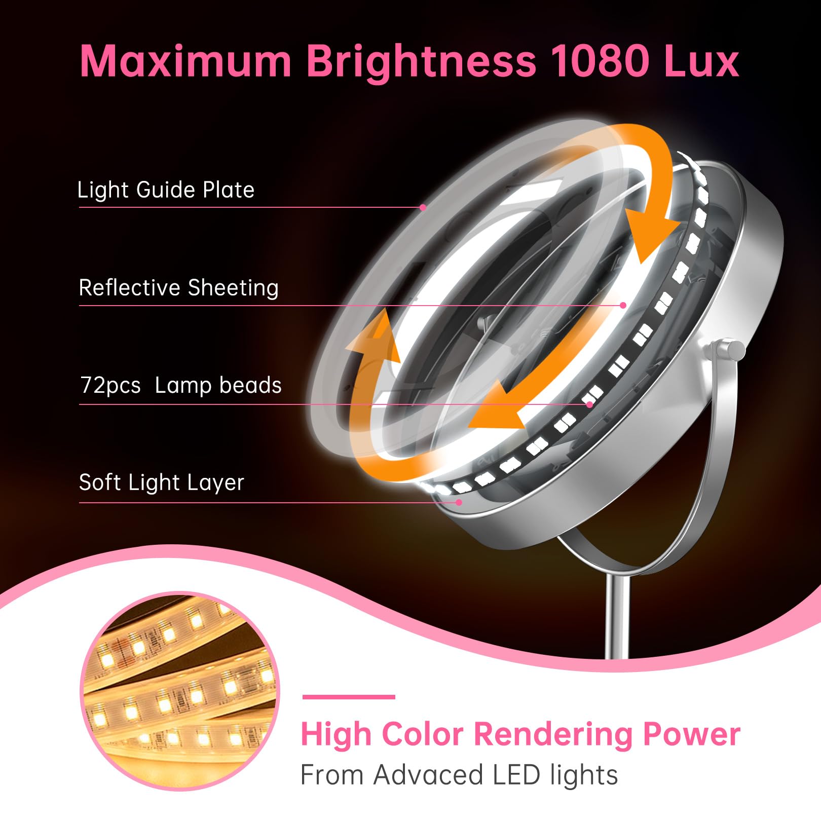 • 10X Magnification and Bright Illumination: Equipped with 72 LED lamp beads for stable, ultra-bright light. The 10x magnification is ideal for precise tasks like styling hair or applying mascara. Note: When using the 10x magnification, maintain a distance of 4 inches from the mirror to avoid discomfort.