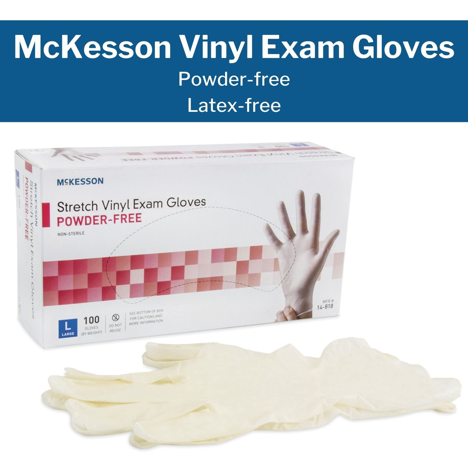 McKesson stretch vinyl exam gloves offer comfort, fit, and durability. These gloves are designed with an exclusive formulation that provides a silky smooth feel.