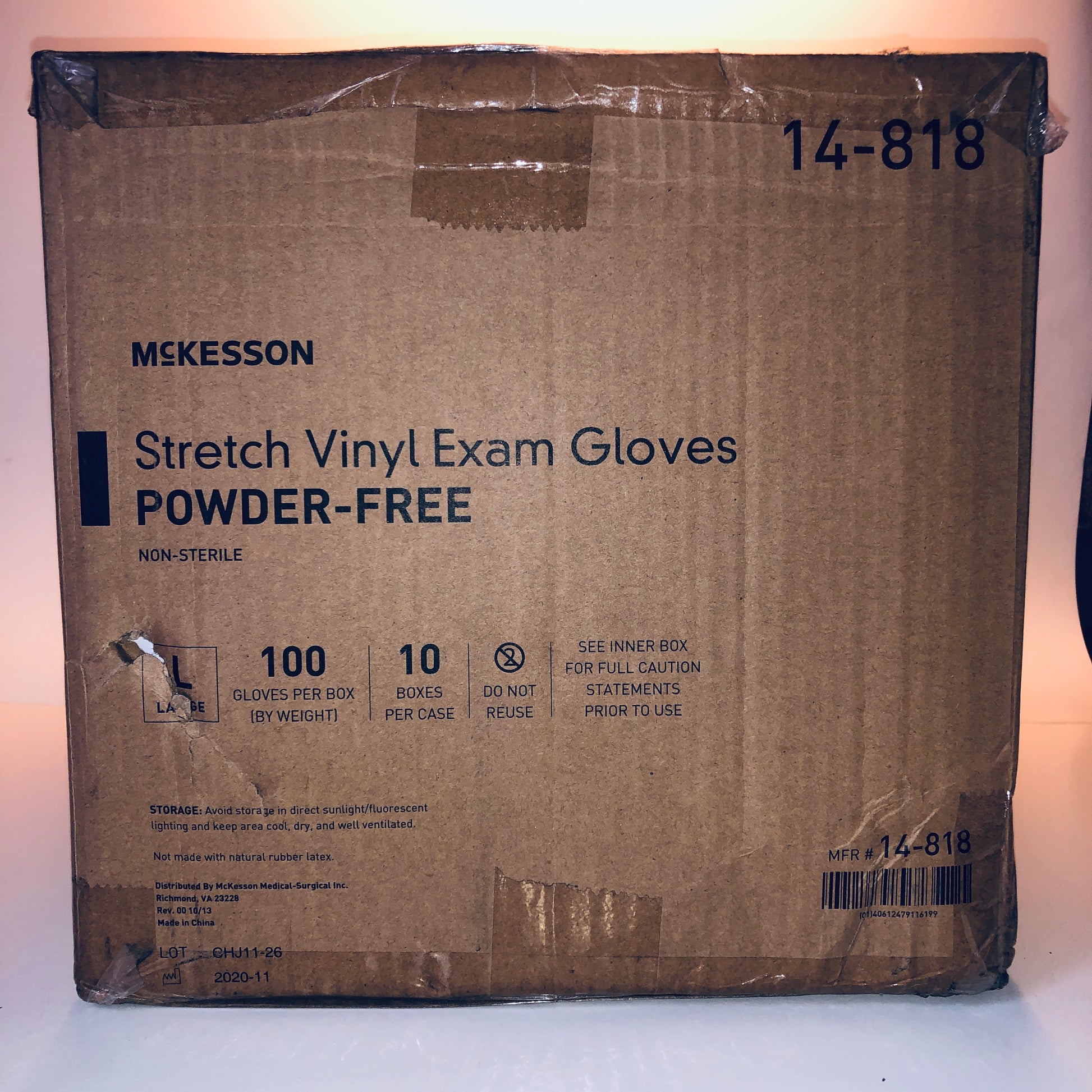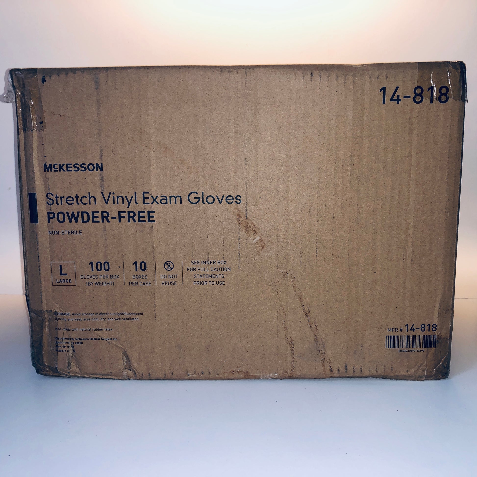 McKesson 14-818 Vinyl Exam Gloves, Non-Sterile, Powder-Free, Large, 1000 Gloves