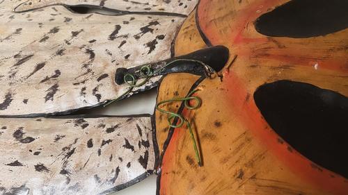 This Halloween yard decoration features a cheerful jack-o'-lantern and three smiling ghosts, perfect for adding a fun and spooky touch to your lawn. Crafted from hand-finished recycled metal, this eco-friendly piece is a high-quality, detailed decoration that can be used both indoors and outdoors. The attached long stakes ensure a sturdy display when pushed into the ground.