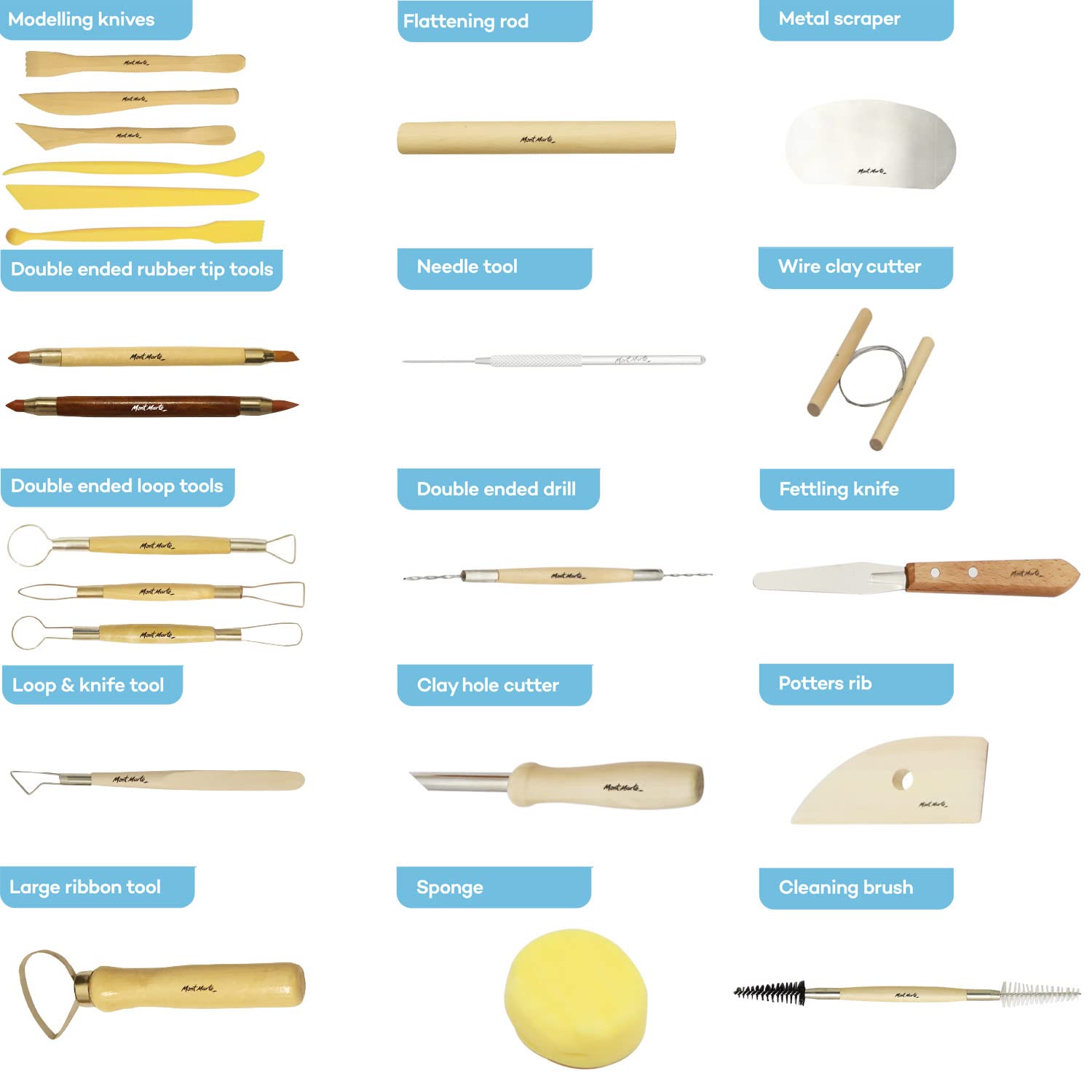 Whether you're working on wheel-thrown pieces or hand-building projects of various sizes, this tool set provides the essential implements for your creative endeavors. The included guide offers helpful tips to get you started, making it an excellent choice for those new to pottery and clay sculpting.