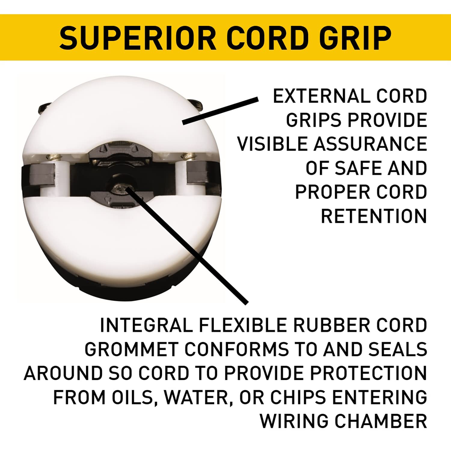 • Double dovetail design to protect against cord pull-out