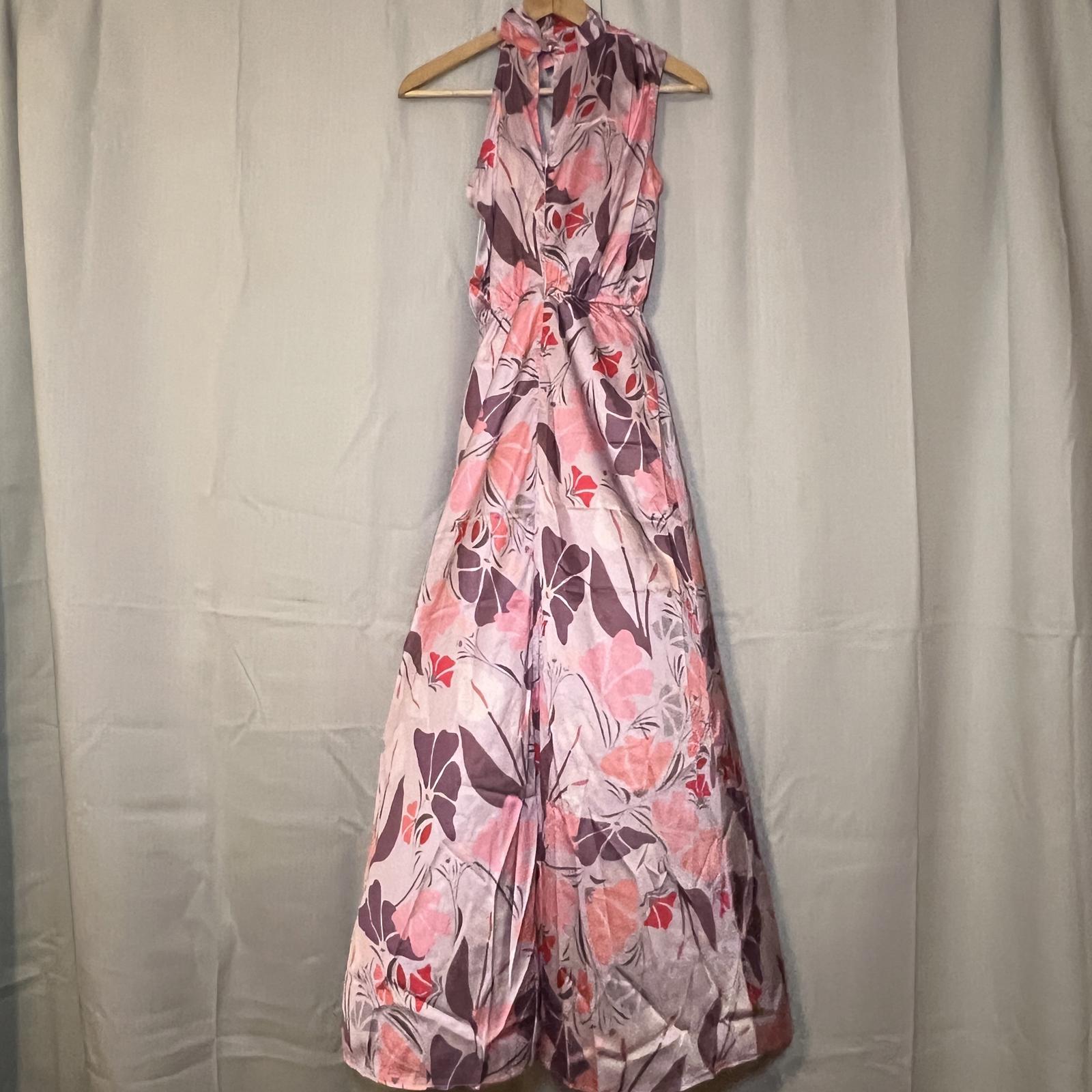 Petal & Pup Amelia Halterneck Floral Sleeveless Satin Maxi Dress