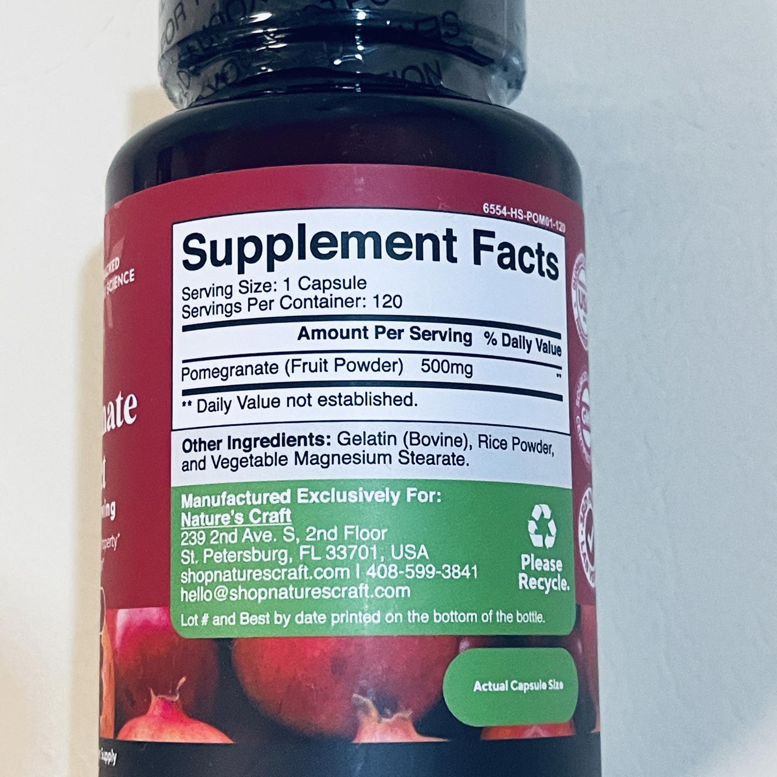 Pomegranate Extract 500mg Dietary Supplement 120 Capsules EXP 10/2026