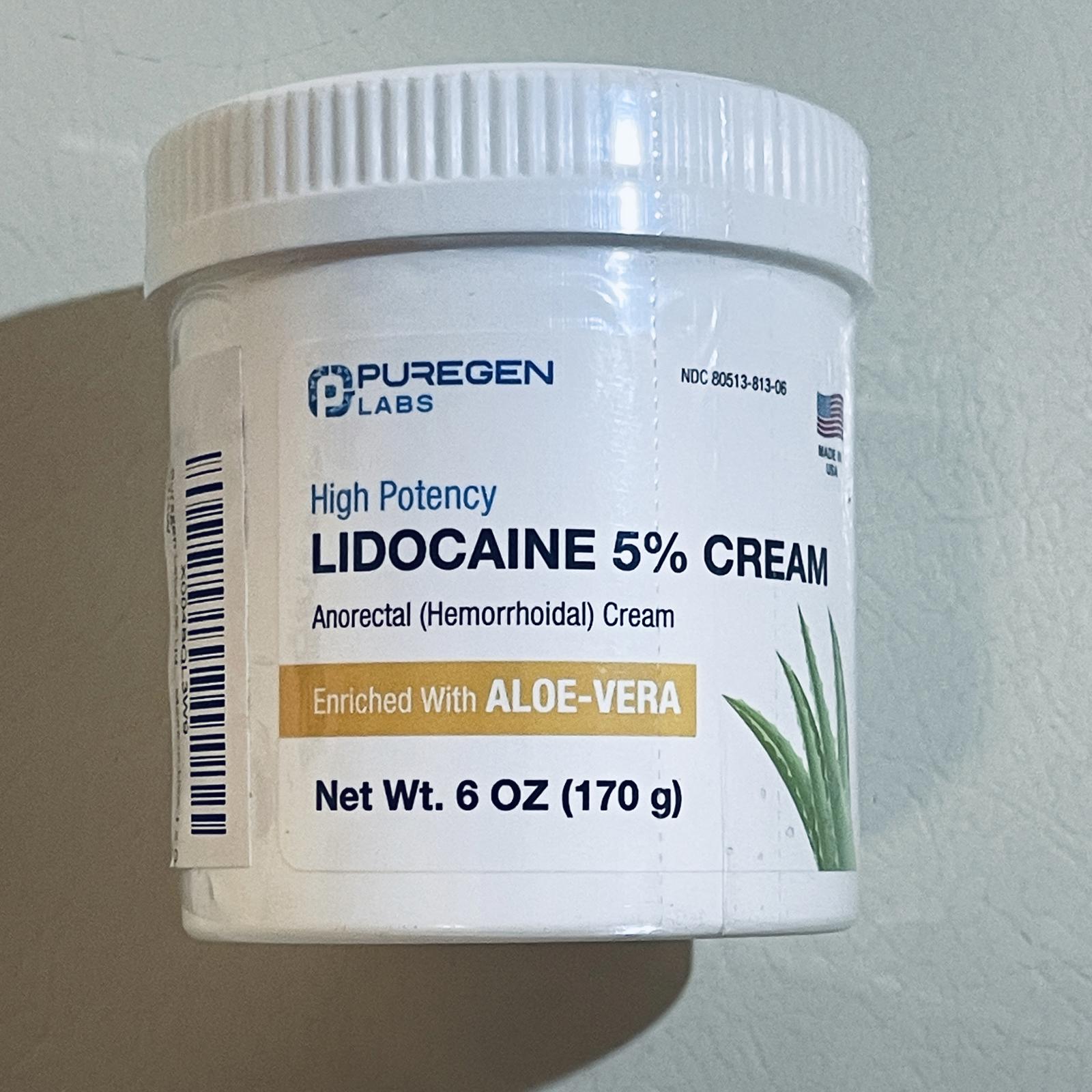 Puregen Labs Lidocaine 5% Cream with Aloe Vera 6 oz EXP 10/2026