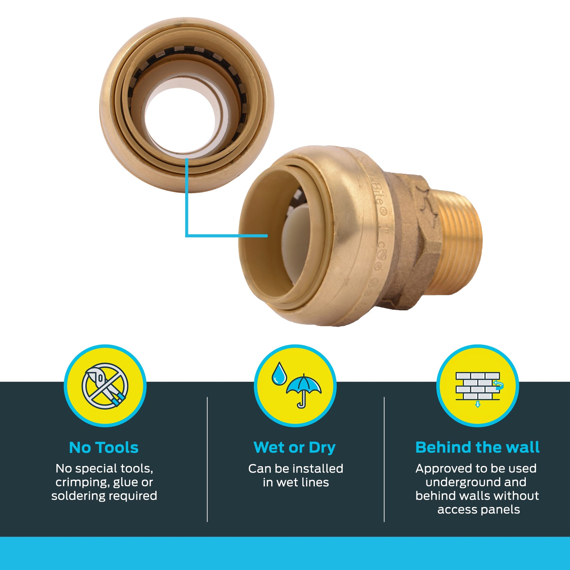 • Push-to-connect design for effortless installation without tools, crimping, glue, or soldering