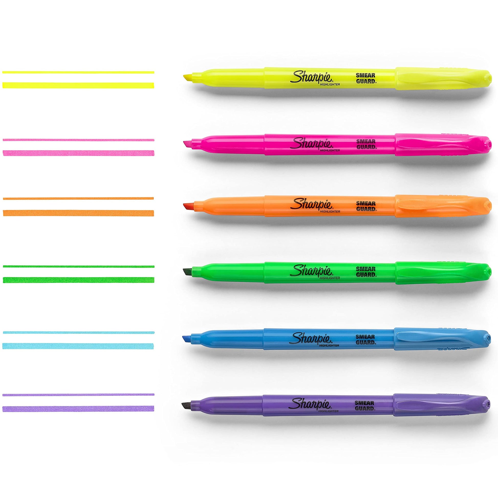 This set of vibrant Sharpie Pocket Highlighters includes an assortment of fluorescent colors: