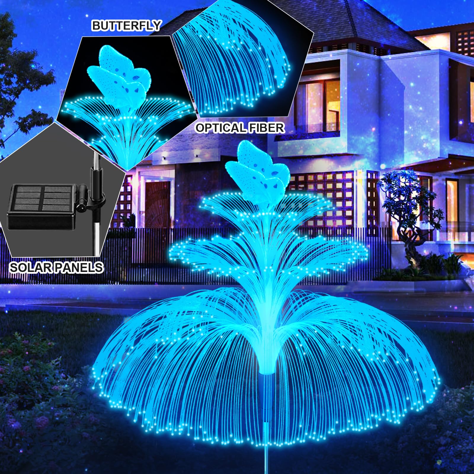 Enhance your outdoor ambiance with our Solar Garden Lights 3 Pack. These innovative jellyfish-inspired lamps feature a unique three-layer design, each topped with a decorative butterfly, creating a mesmerizing display for your courtyard or garden.