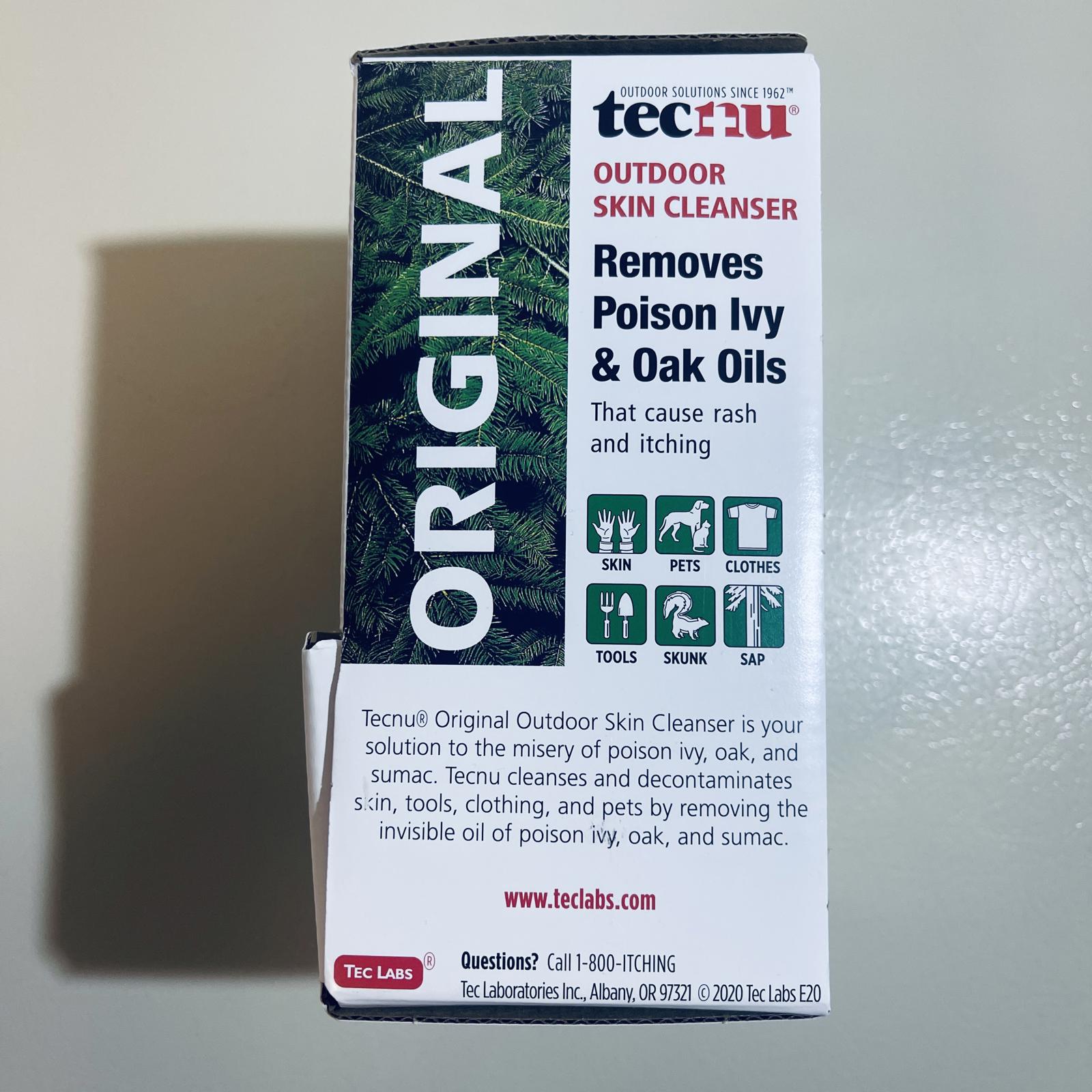 Tecnu Original Outdoor Skin Cleanser removes poison ivy, oak, and sumac oils that cause rash and itching.