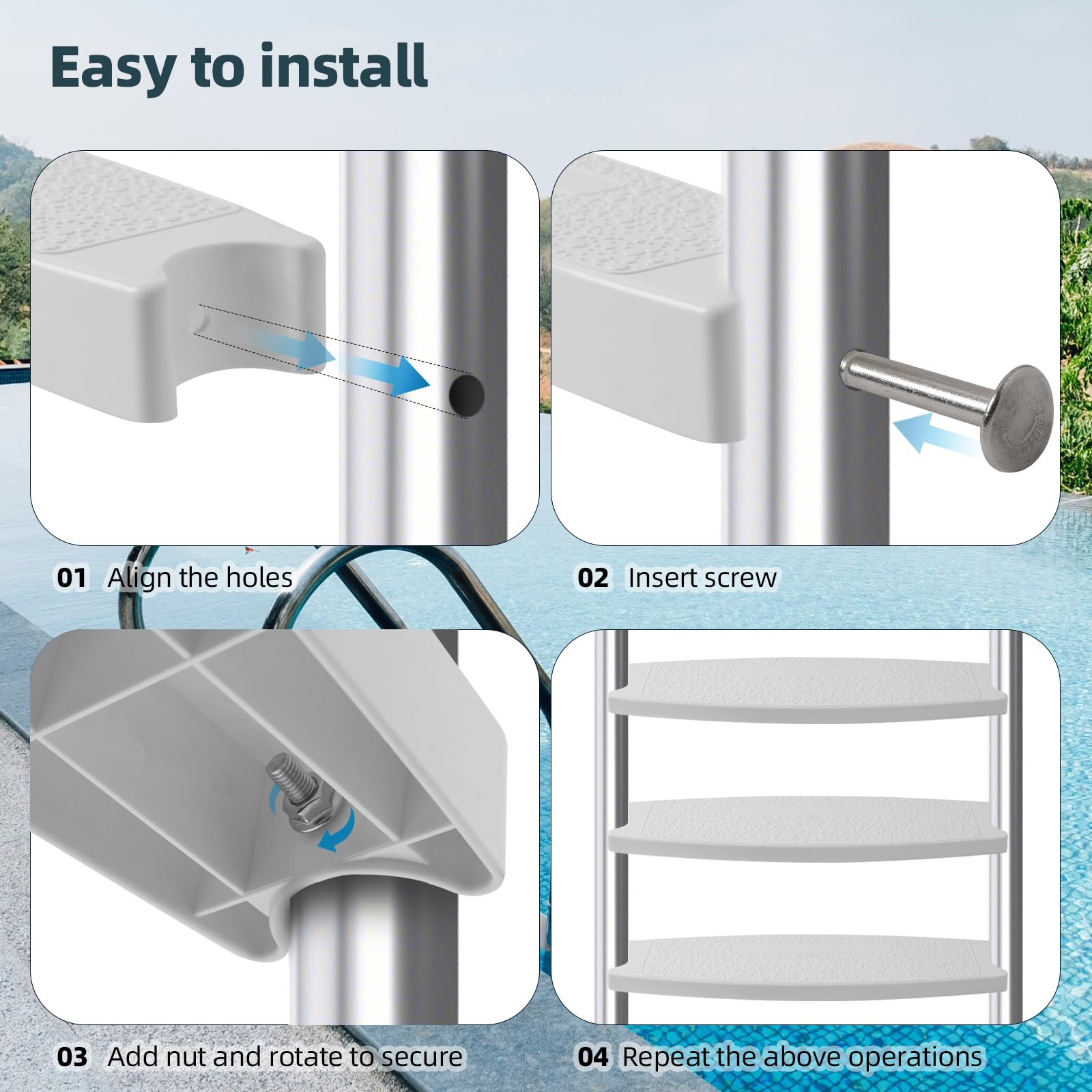 TonGass 3-Pack, White 18" Universal Pool Ladder Steps Replacement parts