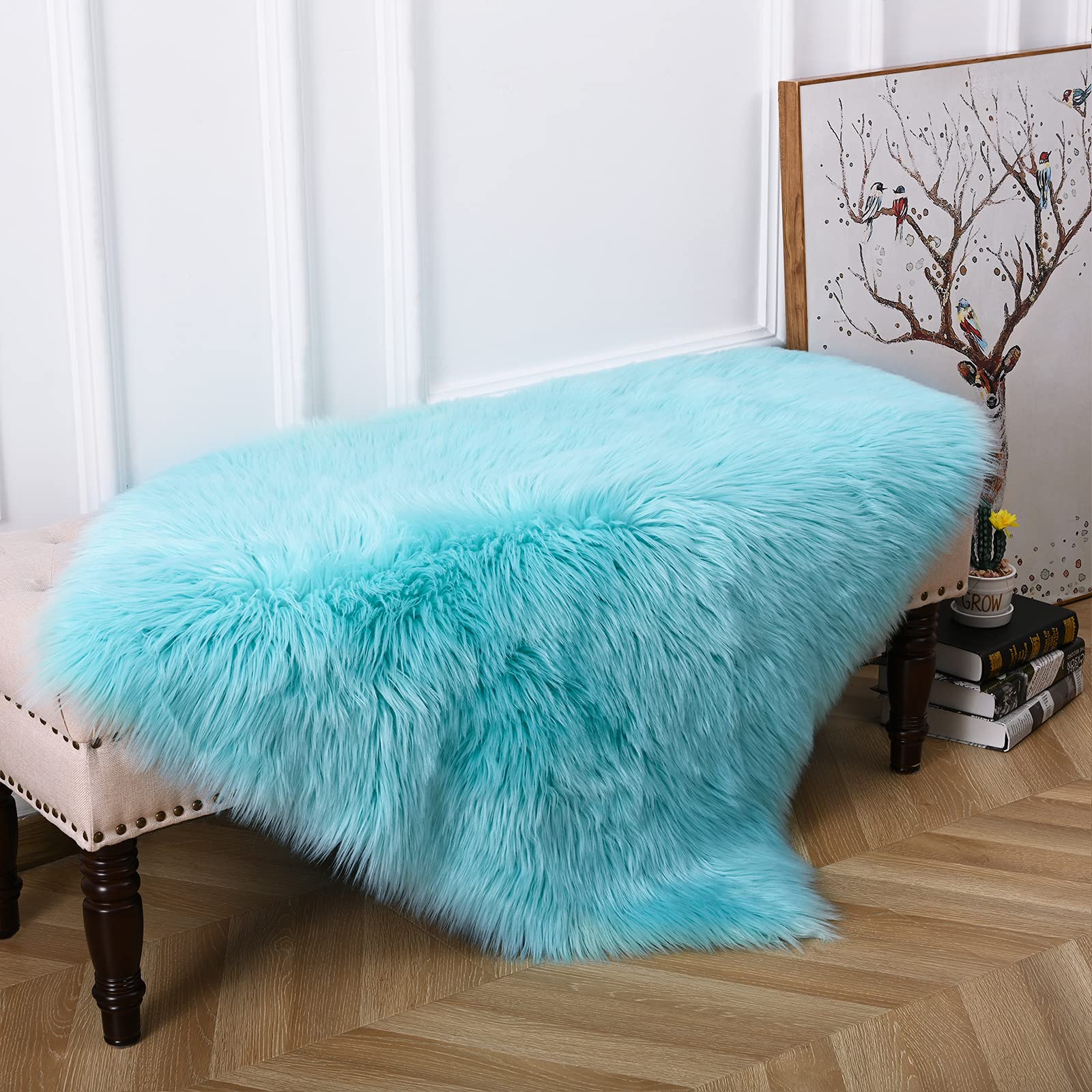 Ultra Soft Rug Faux Sheepskin Fur Area Rug, Fluffy Shag Rug 3x5 Feet - Teal Blue