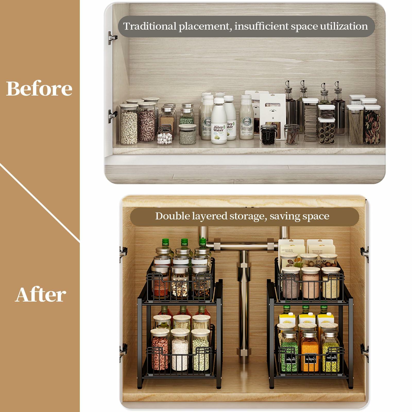 Under Sink Organizer, 2-Tier Pull Out Cabinet Organizer, Metal (1 Pack)