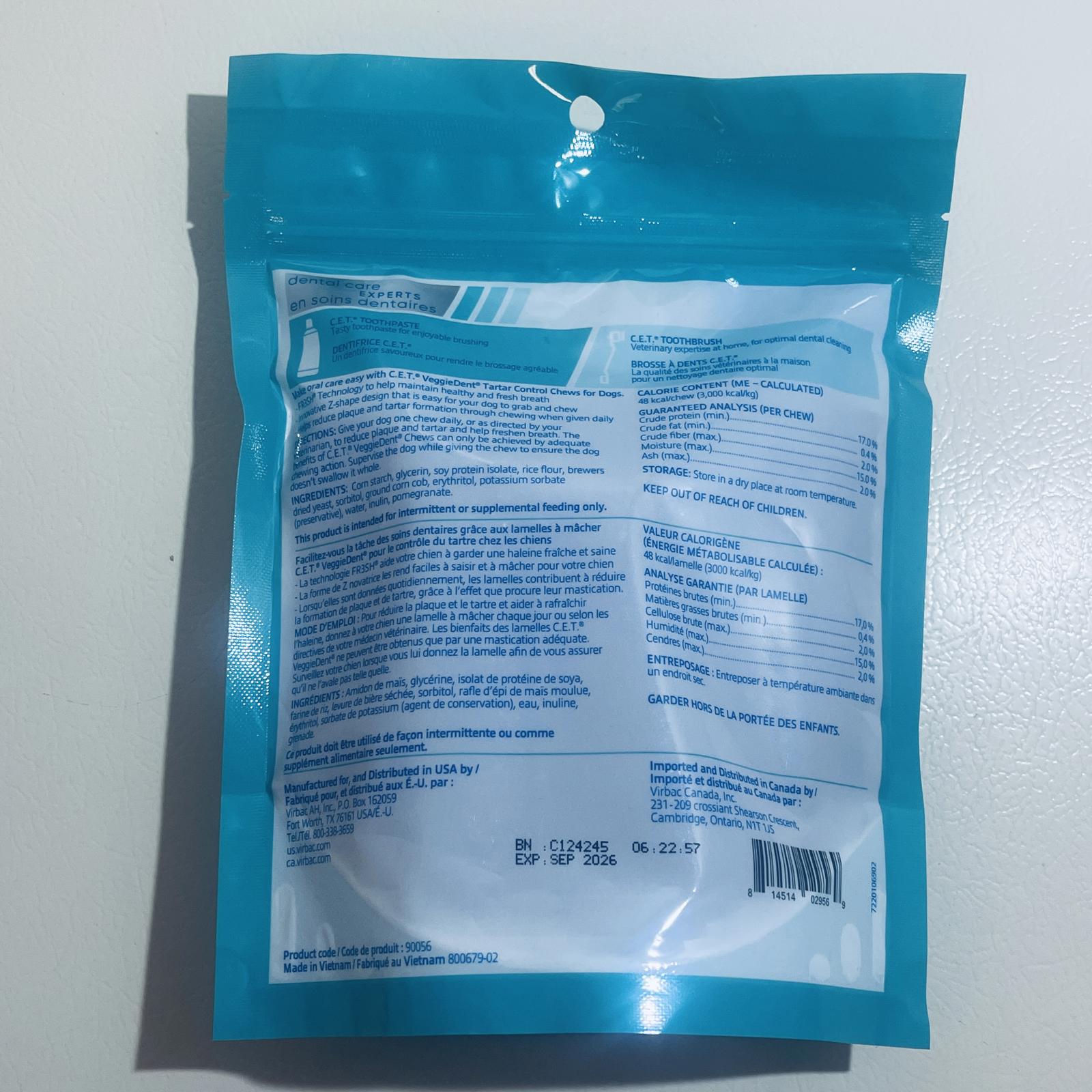 Virbac C.E.T. Veggiedent FR3SH Tartar Control Chews for Dogs, Small Size
