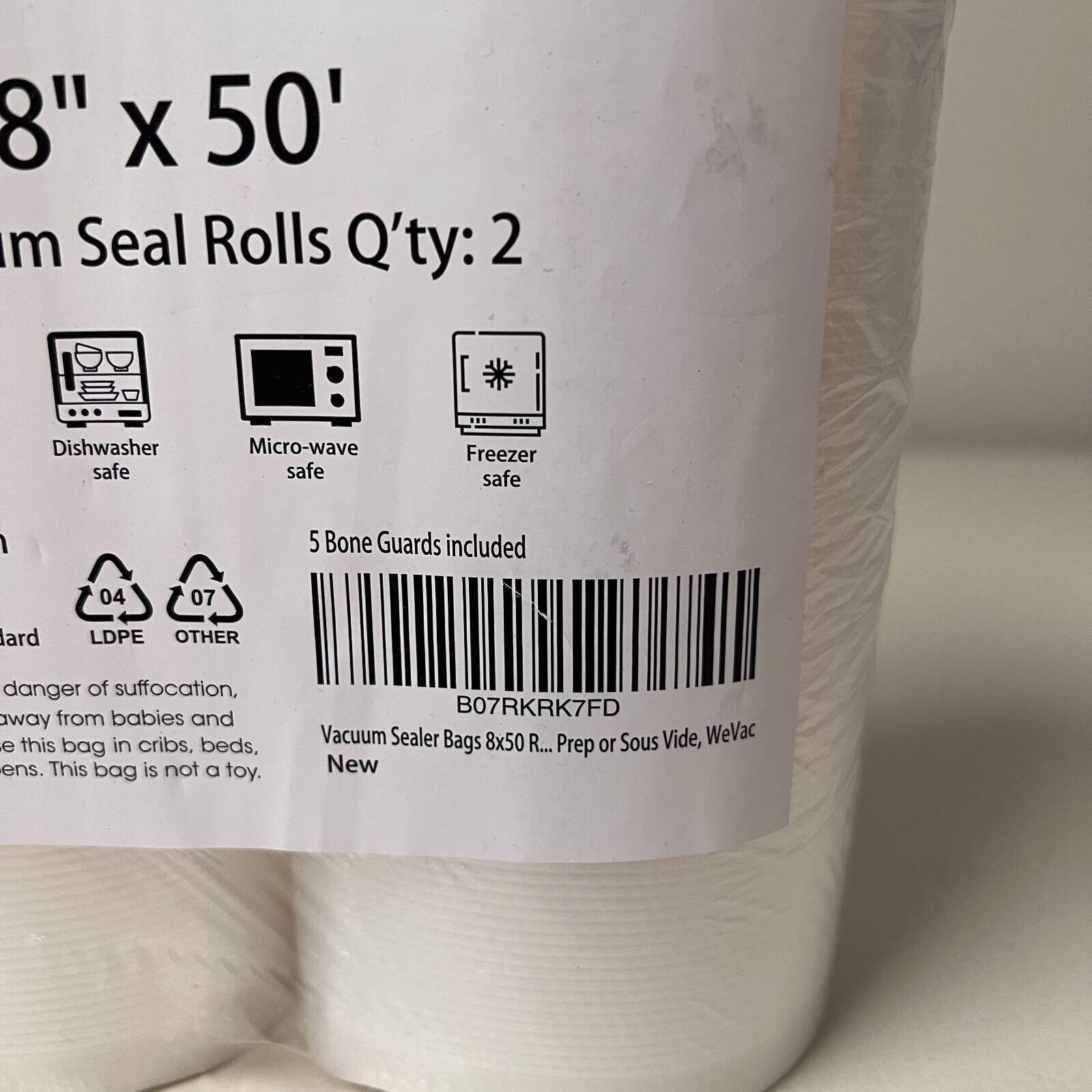 Wevac Vacuum Seal Rolls BPA Free 8" X 50' 5 Bone Guards Pack 2 Rolls New