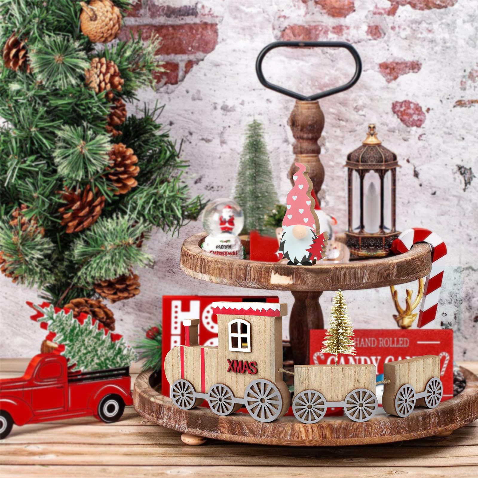 Christmas Wood Train Sign with Gnome Decorations